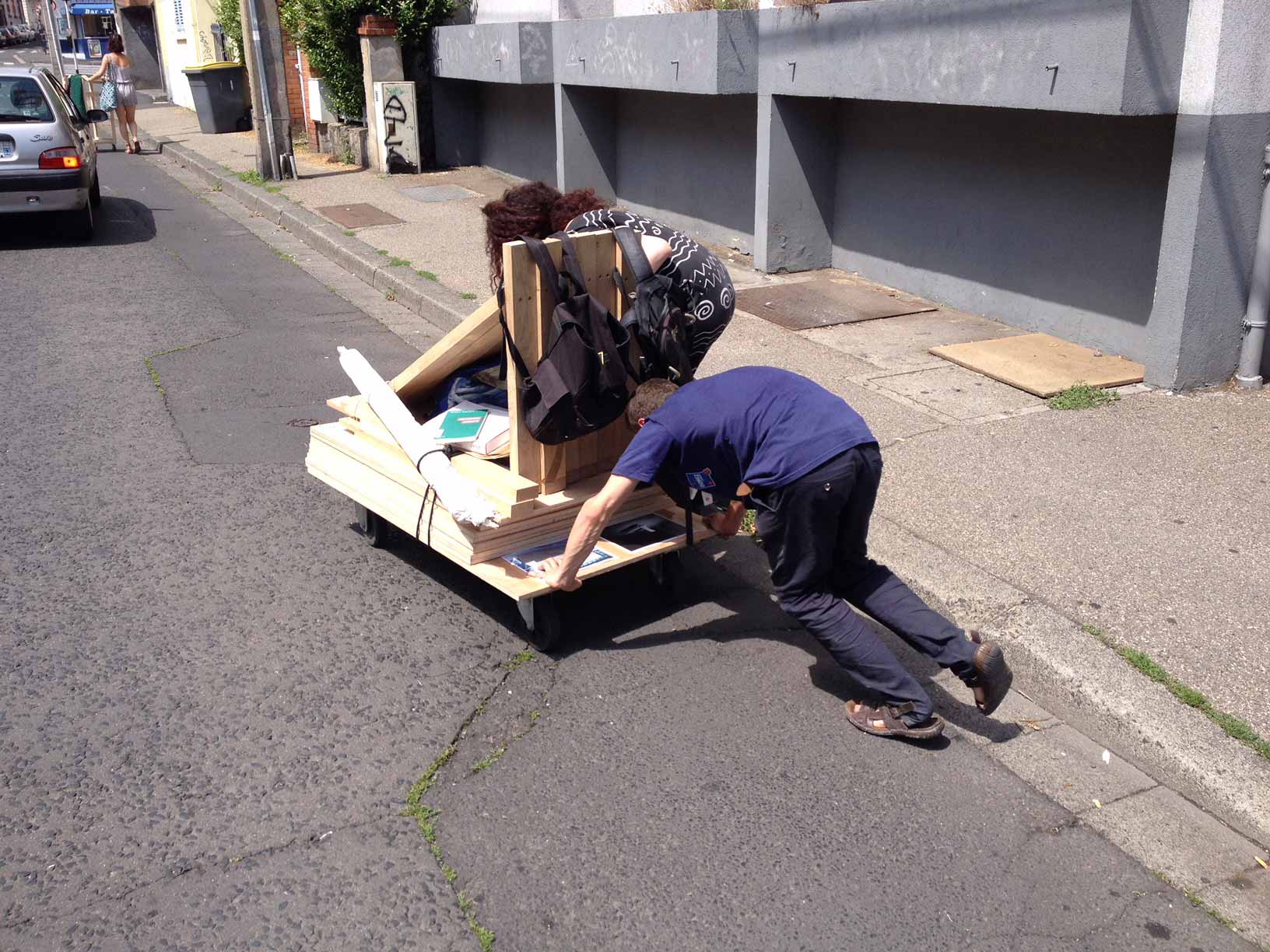 Outil d’intervention en contexte, structure modulable en pièces détachées, chêne et okoumé, largeur : 3,8 mètres, hauteur: 2 mètres, 2017